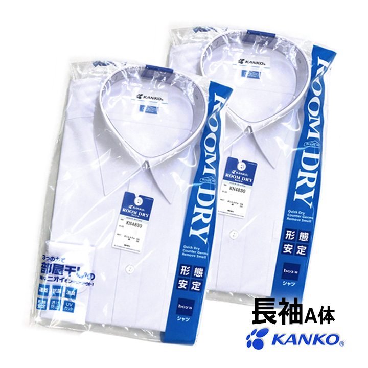 2枚組スクールシャツ カンコー ルームドライ 男子 長袖 150A〜190A 部屋干し 速乾 形態安定 透け防止 UVカット 抗菌 消臭 青白