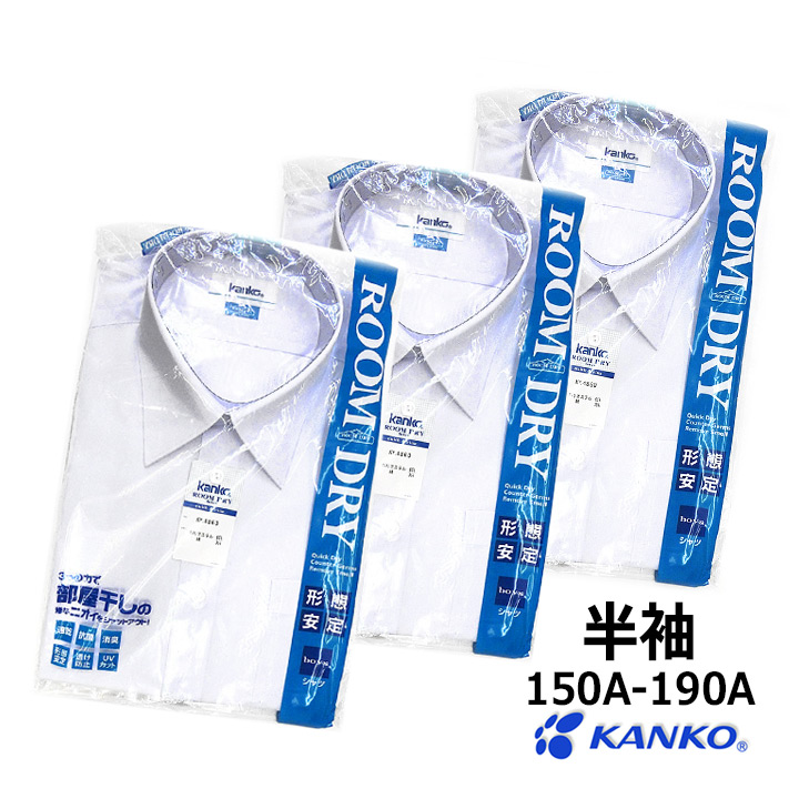 カンコー学生服の大人気シャツルームドライシャツ半袖男子用150A 7~190Aが3枚組でお買い得!