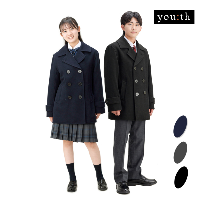 ユース 男女兼用スクールピーコート 紺/グレー/黒 S〜4L 中学生/高校生 ユース P9001