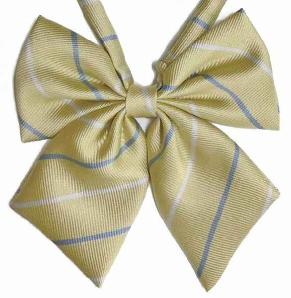 スモーキーイエローにサックスとシルバーグレーのストライプのスクールリボン