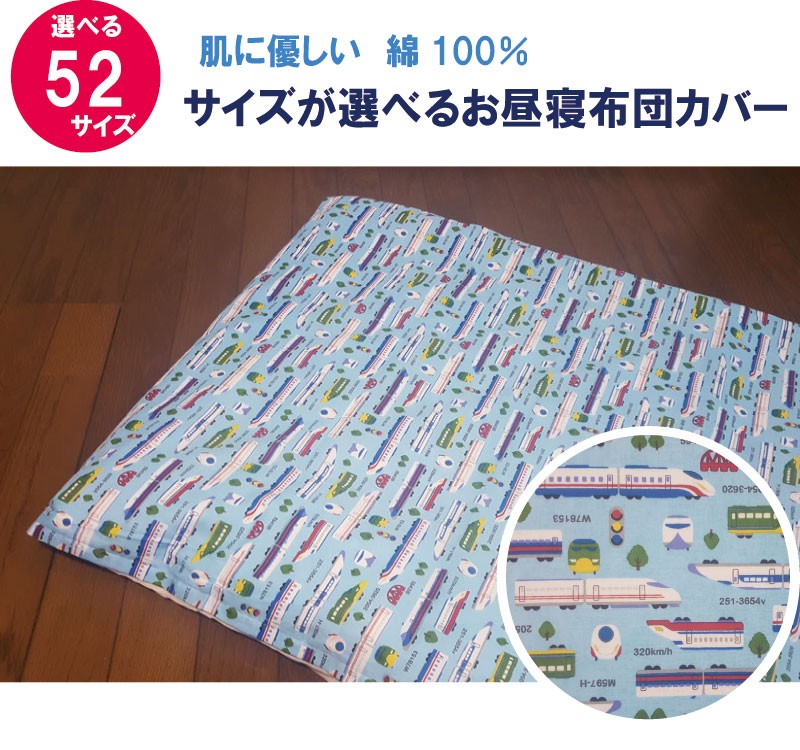 G サイズが選べる 綿100% お昼寝布団カバーSB しんかんせん柄 ファスナー仕様 掛布団用 敷布団用 セミオーダー 保育園 1枚売り 新幹線