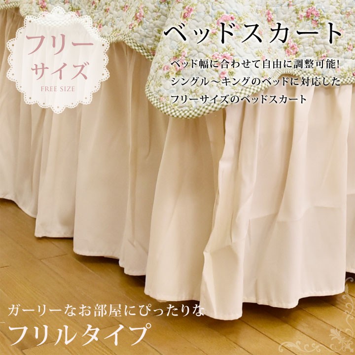 ベッドスカート フリルタイプ フリーサイズ 幅約100〜200cmのベッドに対応(シングル セミダブル ダブル クイーン キング) ベージュ ベッドカバー
