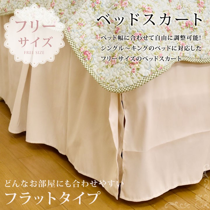 ベッドスカート フラットタイプ(ボックスタック入り) フリーサイズ 幅約100〜200cmのベッドに対応(シングル セミダブル ダブル クイーン キング) ベージュ