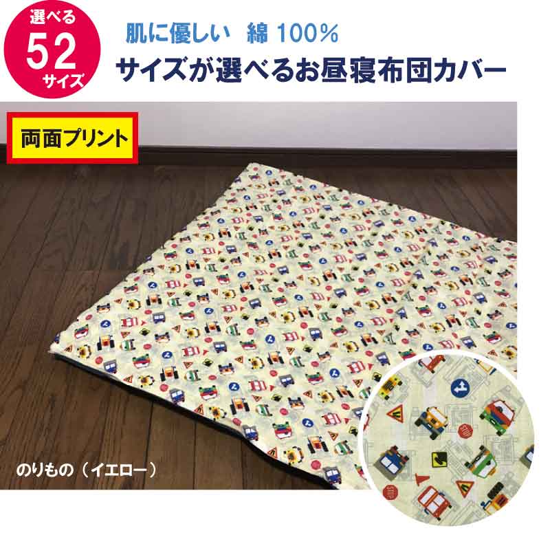 A お昼寝布団 カバー サイズが選べる 綿100% のりもの柄 ファスナー仕様 掛布団用 敷布団用 ふとんカバー セミオーダー 保育園【1枚売り】