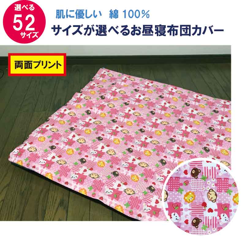 お昼寝布団 カバー サイズが選べる 綿100% どうぶつ柄 ファスナー仕様 掛布団用 敷布団用 保育園 さる/くま/ライオン/うさぎ