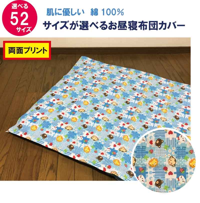 A お昼寝布団 カバー サイズが選べる 綿100% どうぶつ柄 ファスナー仕様 掛布団用 敷布団用 保育園