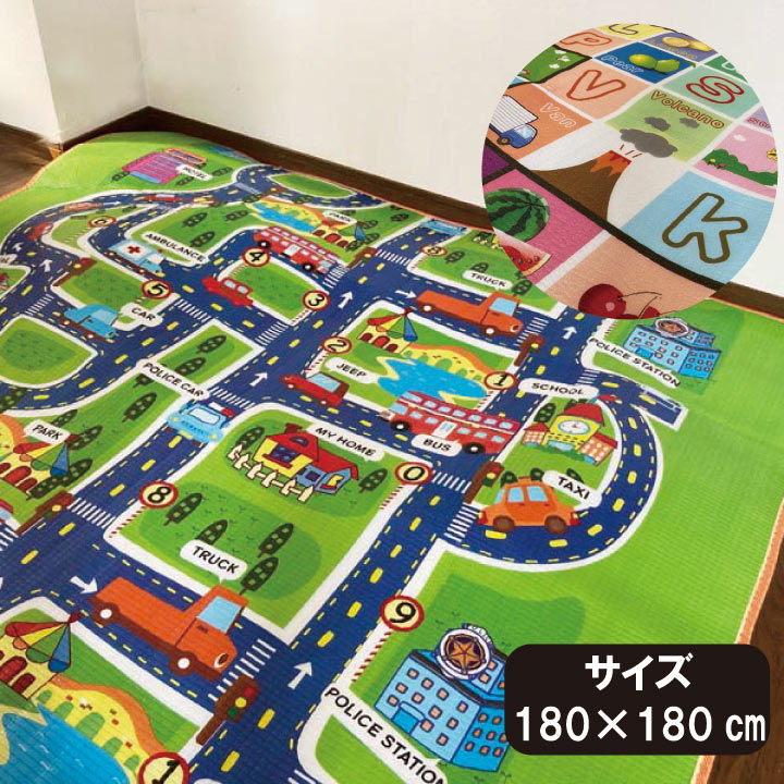 「モニター特別価格」プレイマット 180×180cm 道路 ジャンボプレイマット ルームマット キッズマット ミニカー ロードマップ