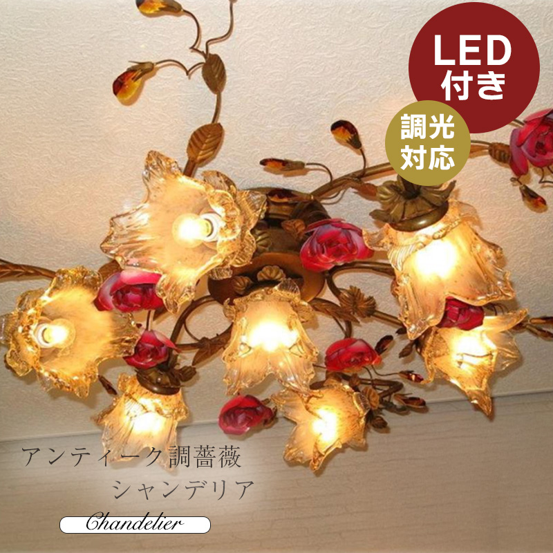 ☆可愛いデザイン照明 新品 薔薇モチーフ7灯シャンデリア LEDシーリングタイプを是非この機会に!
