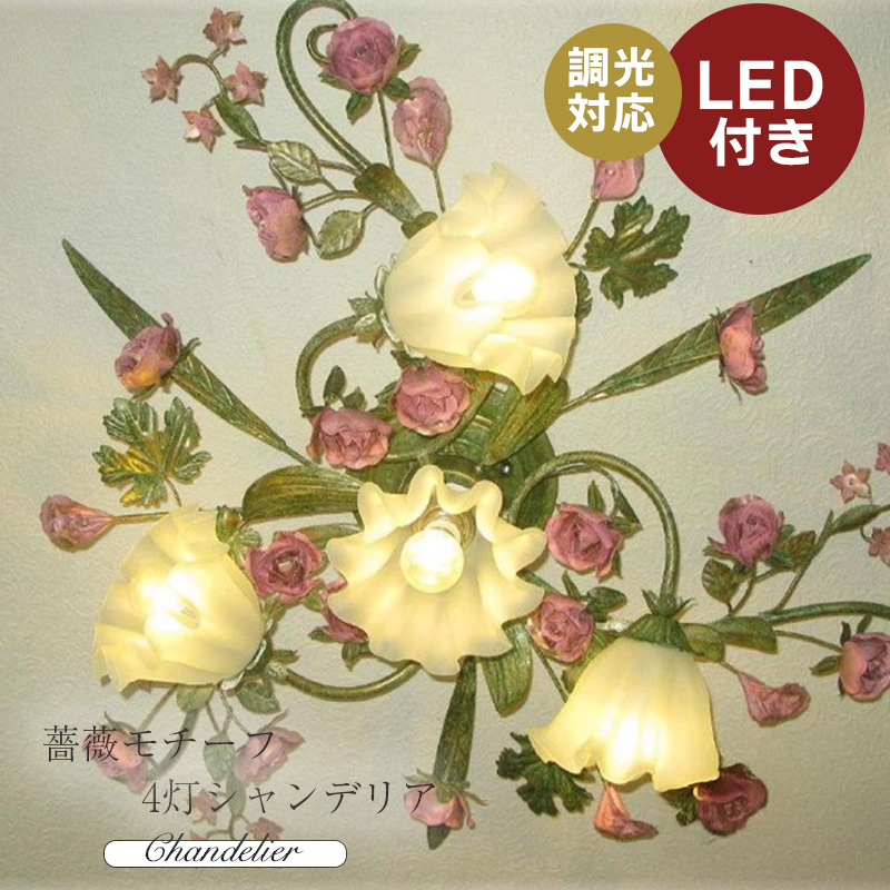 ☆LED電球サービスキャンペーン中!☆【送料無料】可愛いデザイン照明 新品 薔薇モチーフ4灯 シャンデリア シーリングタイプ<BR><BR>照明 照明器具 シャンデリア LED おしゃれ 器具 キャン ドール リビング レール 安いled シーリング 球形 e17 e26 球 白 リモコン 天井 調光 調色 センサー 白色 暖色 昼白色 蛍光灯 白熱球 省エネ キャンドル ボール球 広角 ペンダント 電球 和室 和風 豪華 家具 ゴージャス インテリア用品 アジアン ブラケット 壁掛け ポーチライト 門灯 玄関 壁掛け灯 フロアスタンド ライト ダウンライト ナイトスタンド あんどん 照明 安い 北欧 卓上 屋外 屋内 防水 投光器 足元灯 子供部屋 pse 4.5畳 6畳 8畳 12畳 15畳 18畳 20畳 led led led<BR><BR>注※上記表記は検索用キャッチコピーで商品説明では御座いません※