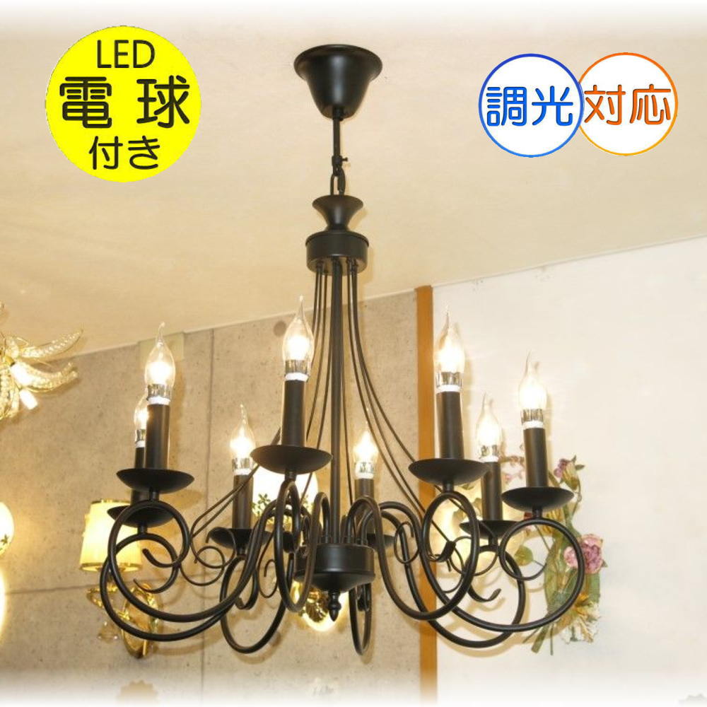 【送料無料!】★豪華LED照明★新品・アンティーク調/ブラックアイアン8灯LEDシャンデリア