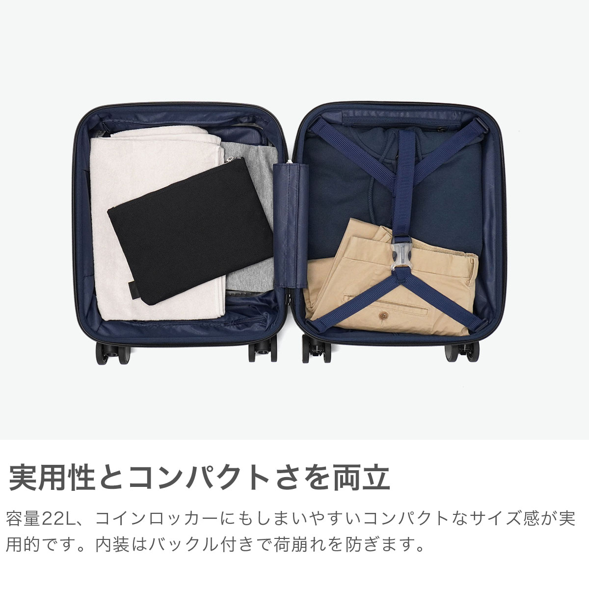 充実の機能性でビジネストリップ・旅行をより快適にする「INTER CITY」。こちらは、コインロッカー(一般的な500〜600円の中型・Mサイズ)収納可能で、100席未満航空機の機内持込対応サイズの22Lスーツケース。メイン素材には強度と弾力性を兼ねそなえたポリカーボネートプラス素材を採用。さらに、13インチ対応のPC収納を装備し、いつでもデバイスに手が届く設計に。安心のダイヤルロック式TSロックを備え、荷物の紛失時に発見率が向上するトラベルセントリーID付きの安心設計もポイントです。
