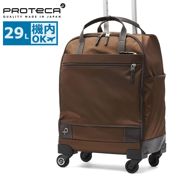 ひと針ずつ丁寧に縫いこんだボディや、随所にあしらった牛革の装飾。そんな気品を感じさせる、プロテカ『SOLLIE 3/ソリエスリー』シリーズのソフトキャリーケース。機内持ち込み対応の29L容量で、2〜3泊の旅行に最適。フレームレスのソフト仕様により、バッグ感覚で扱え、旅行はもちろんジムやショッピングなど日常使いにも活躍します。キャスターストッパーとサイレントキャスターを備え、安定感と快適な走行性を兼ね備えた一台です。