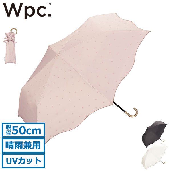 なみなみシルエットがかわいい、ガーリーな折りたたみ日傘。トレンド感のあるデザインに、シンプルな配色のハート柄で持ちやすく仕上げました。遮光・UVカット率ともに100%、さらに遮熱性も優れており、暑い夏の熱中症対策もバッチリ。またはっ水加工を施しているため、雨傘としても使える兼用タイプとなっています。