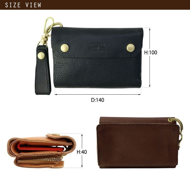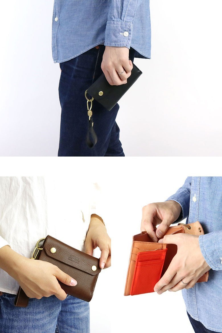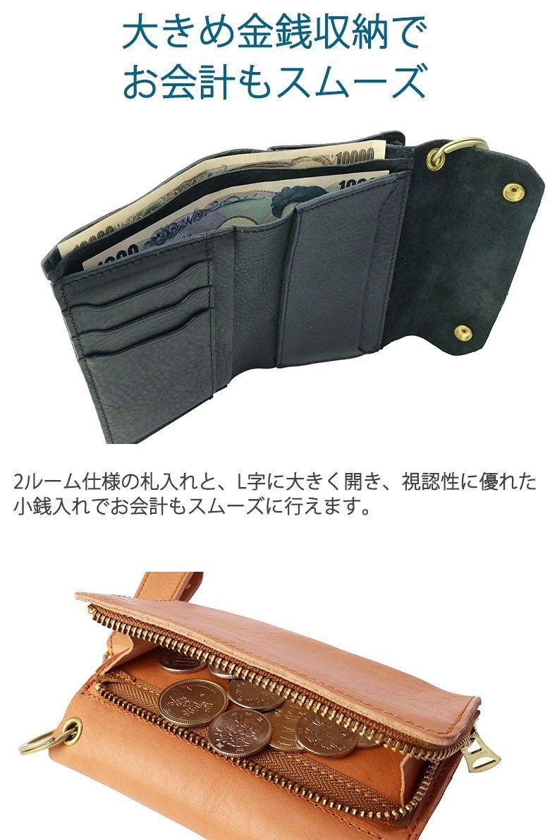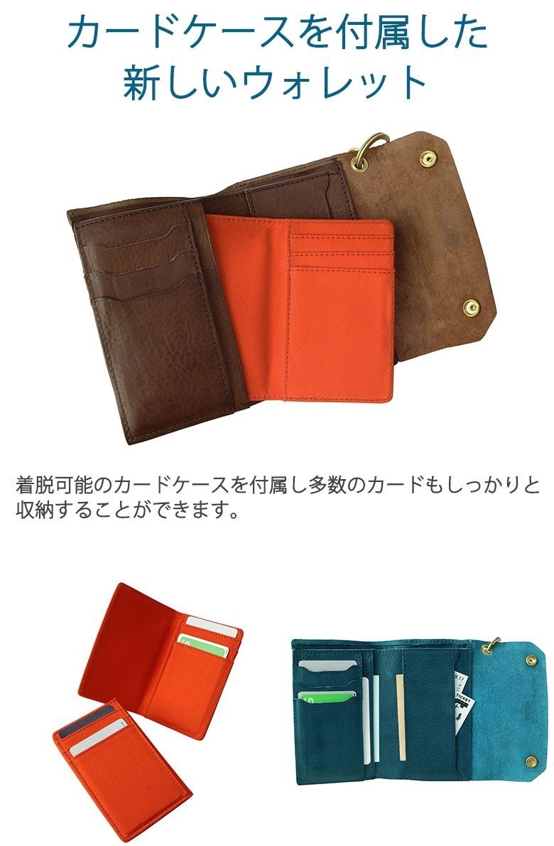 使い込む程にエイジング効果があり、一点物の様な風合いに変化するレザーを使用した三つ折り財布。パーツ類に真鍮を使用することで、細部に至るまで経年変化を楽しめます。カードケースを単体で付属し機能性にも収納力にも充実した仕上がりです。