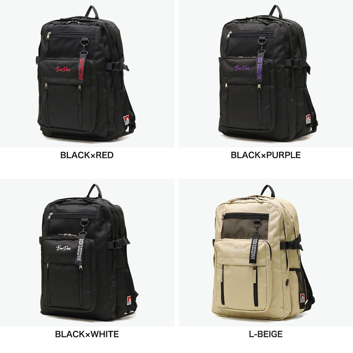 | カラー | BLACK×RED、BLACK×PURPLE、BLACK×WHITE、L-BEIGE |
