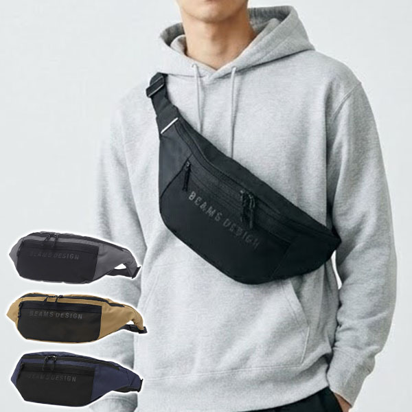 軽量感と気軽さをテーマにしたカジュアルな横型ボディバッグです。本体は、必需品をコンパクトに持ち運べるサイズ感。幅広い服装に馴染むシンプルな外装に、オレンジの裏地がアクセントになったデザインがポイントです。