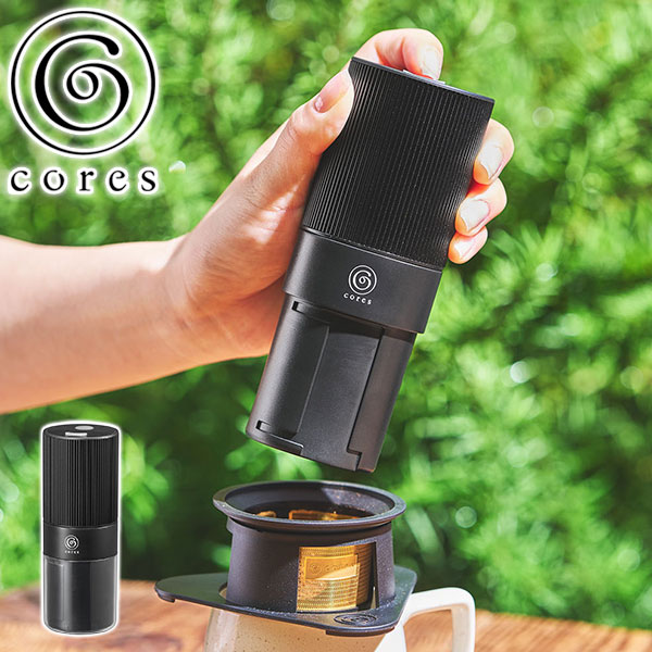 コレス コーヒーグラインダー Cores 電動 コンパクト アウトドア コーヒーミル コーヒー 充電式 コードレス 持ち運び 粒度調節 おしゃれ キャンプ ポータブルコーヒーグラインダー 小型 ブランド ミル ブラック 極細挽き 細挽き 中挽き 粗挽き 豆挽き ポータブル コーン式 コーン式グラインダー 電動コーヒーミル 充電 挽き目調整 小さめ 小さい 携帯 軽量 軽い ドリップ レジャー 登山 ハイキング BBQ キャンプ用品 オフィス 会社 キッチン インテリア おうちカフェ カフェ シンプル オシャレ 黒 ユニセックス プレゼント ギフト 贈り物