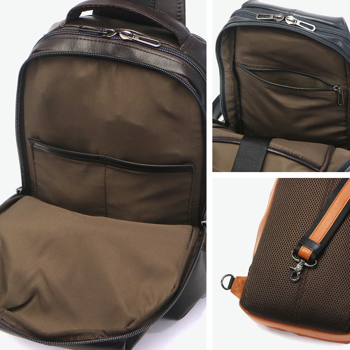 上質な本革を使用したシンプルかつ洗練されたデザインの2層式ボディバッグ。B5サイズや10インチのタブレットも収納可能で、デイリーから旅行まで活躍します。カジュアルからきれいめまで幅広いスタイルにマッチする、大人のための上品なアイテムです。