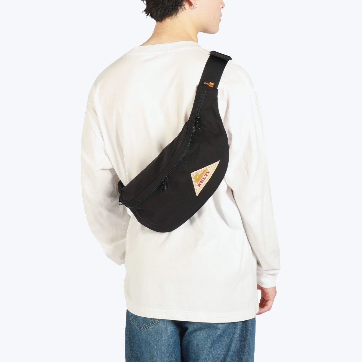 強度と耐摩耗性に優れたナイロン素材を使用した、柔らかい触り心地と身体に馴染むフォルムが特徴のウエストバッグ。開口部のファスナーには、スムーズな開閉を実現するYKK製の別注ファスナーを採用。内部にはキーフックと複数の小分けポケットが装備されており、小物類を整理整頓するのに便利です。さらに、ショルダーストラップには50mm幅のテープを使用しているため、荷物が重くなっても肩に食い込まず、快適に持ち運べます。