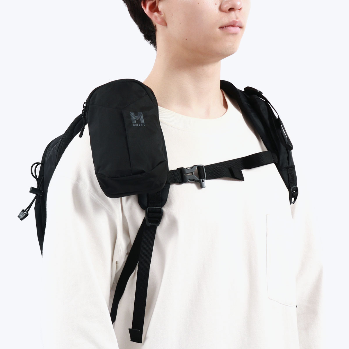 カメラやスマホが収納可能な、クッション性のあるフルパッド仕様の小型ポーチ。リュックストラップへの取り付けはもちろん、ベルトループにも装着できる便利な設計です。背負ったままでも荷物の取り出しがスムーズで、アウトドアや登山など、アクティブなシーンで活躍してくれるアイテムとなっております。