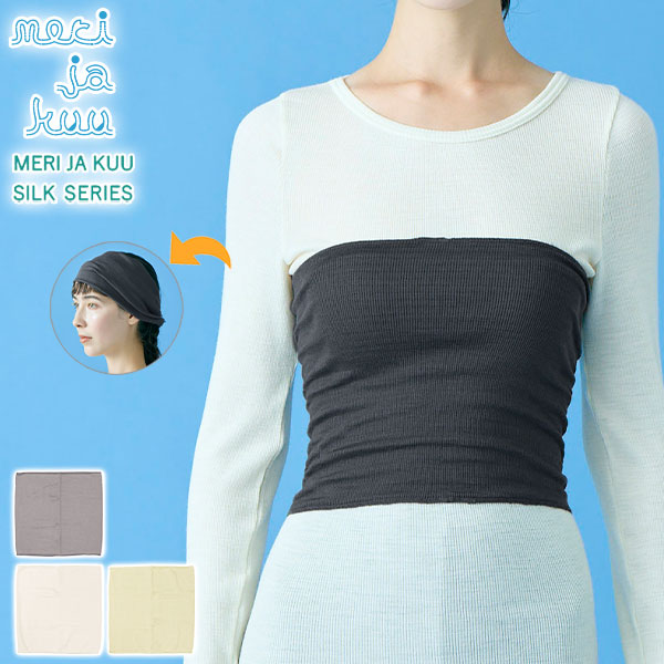 つるりとなめらかなシルクや、ふわふわのシルクの良いところを形にした『MERI JA KUU SILK SERIES』の腹巻。シルクの質感はもちろんのこと、伸縮性や肌触り、着心地にもこだわりました。こちらは動作が制限されにくく、外出先にも持ち運びしやすい、長さ26cmのショートサイズです。