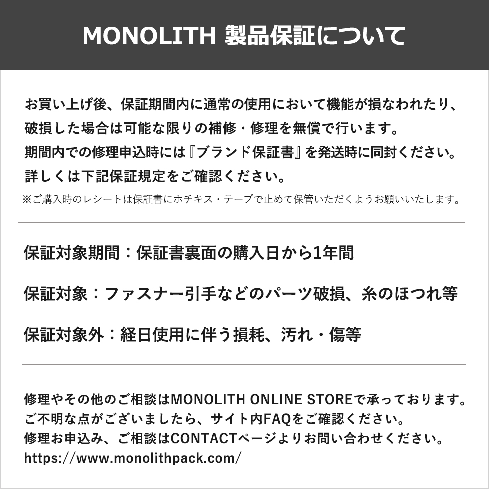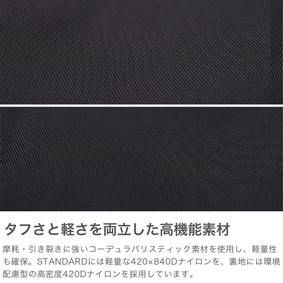 | 素材 | <表地> CORDURA BALLISTIC AIR 420×840D ナイロン <裏地> ECO FABRIC 420D ナイロン |
