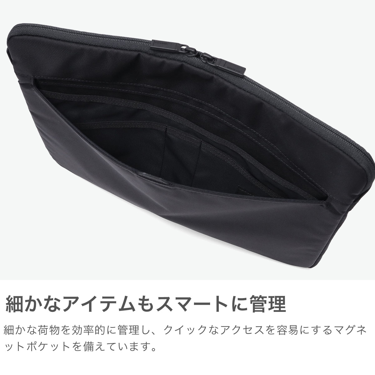 現代のワークスタイルに欠かせないPCなどデジタルデバイスの収納力を強化した、スマートなデザインのPCケース。13インチクラスのラップトップが収納可能で、バッグインバッグにも最適。周辺機器の仕分けに最適な、充実したオーガナイザーや、バッグと組み合わせて使用できるコンパクトなサイズ感がポイントです。