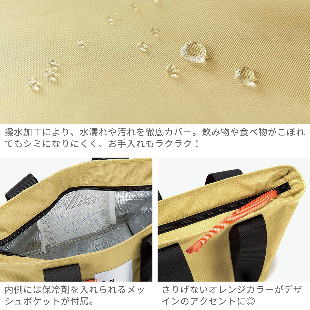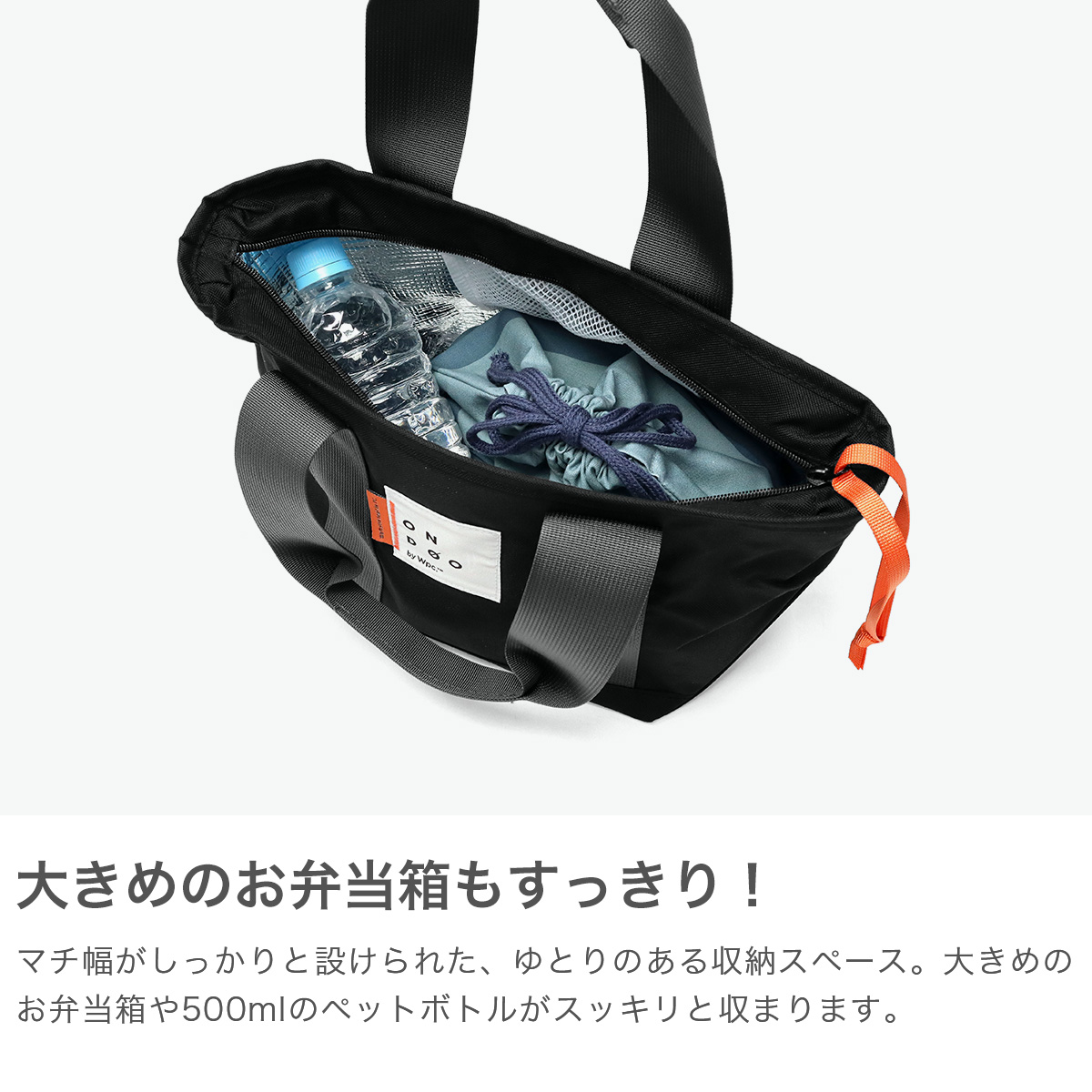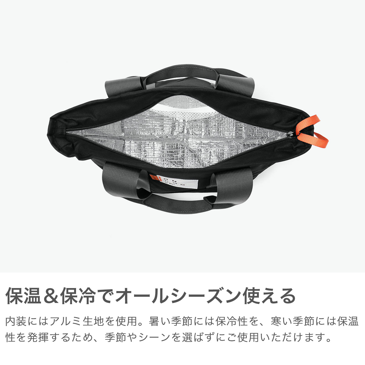 大きめのお弁当箱やドリンク等が入るランチバッグです。便利な保温保冷機能付きで、毎日のランチタイムはもちろん、温かい季節のピクニックから、肌寒い季節の運動会・スポーツ観戦まで、オールシーズンで活躍!ユニセックスで使えるシンプルなデザインも魅力です。