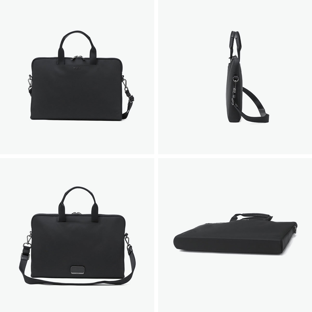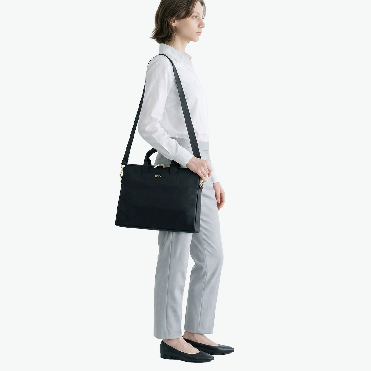 こだわりの品質と耐久性を備えつつ、現代の女性が求める洗練されたデザインとファッション性を融合した『Voyageur』のPCケース。A4サイズの書類や14インチまでのPCをすっきり収納できる、無駄のないスリムなシルエットが魅力です。取り外し可能なショルダーストラップに加え、トップハンドルはポケットに収納可能。シーンに応じてバッグインやクラッチバッグとしても使える、柔軟でスマートな使い勝手を備えています。
