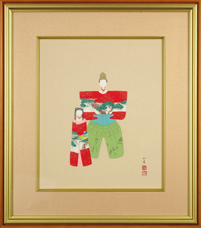 上村松園 「 神ひな之図 」 シルクスクリーン 版画 版画 日本画 絵画 おひなさま 立雛 桃の節句 春 女の子 文化勲章作家 送料無料