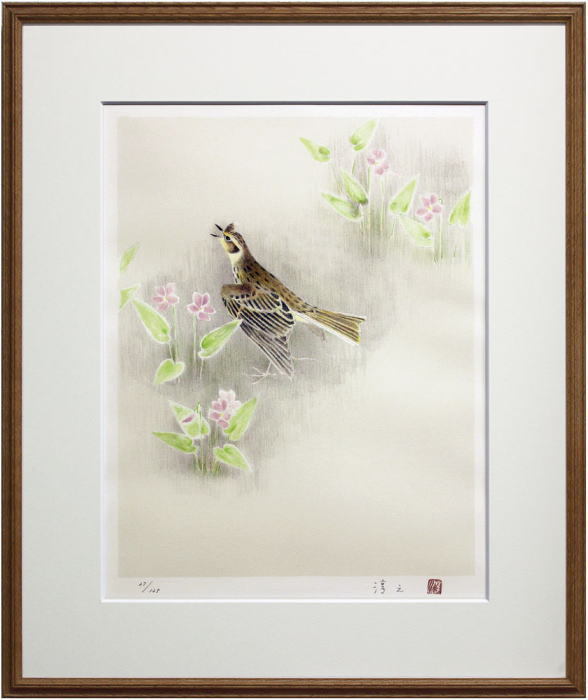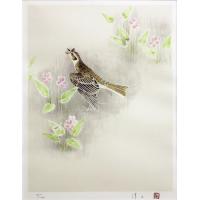 上村淳之 『雲雀』(ひばり) リトグラフ(石版画) 絵画 日本画 鳥 送料無料