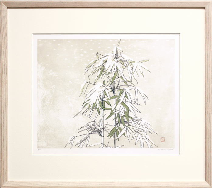 田渕俊夫 「 たけ 」 四季六題より オリジナルリトグラフ 石版画 版画 絵画 日本画 竹 冬 雪 繊細 シンプル 静謐