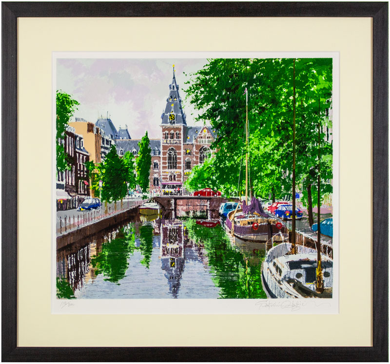 小田切 訓「 博物館のある運河 」 オリジナル リトグラフ 版画 版画 外国の風景 アムステルダム オランダ 送料無料