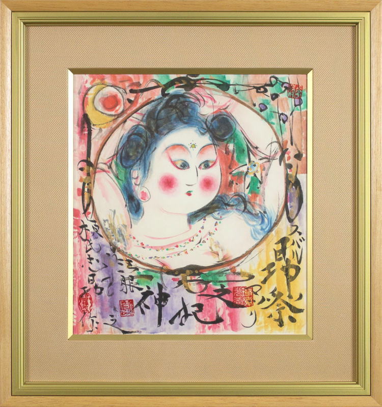 そして、画伯はこうした一連の作品を「倭絵(やまとえ)」 と称していましたが、本作品はその中でも棟方芸術の特徴でもある躍動する筆致と鮮烈な色彩によって描かれた名作中の名作といえます。