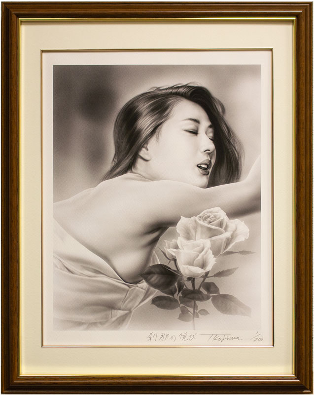 小嶋 保 「 刹那の悦び 」 ジグレー 版画 版画 絵画 写実 細密 女性 挿絵 人物 モノクロ 白黒 送料無料