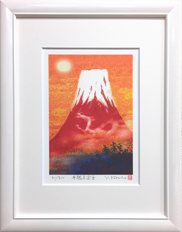 吉岡浩太郎 「 昇龍赤富士 」( 太子判 ) ジグレ・シルクスクリーン版画 版画 絵画 縁起 開運 風水 富士山 竜 辰 小さい版画 小さい絵