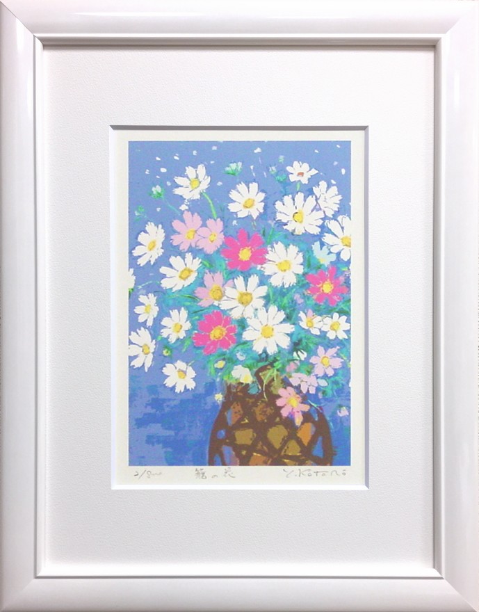 吉岡浩太郎 『籠の花(コスモス)』(太子判) ジグレ・シルクスクリーン版画 絵画 洋画 プレゼント 秋