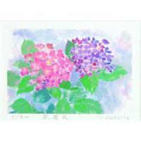 吉岡浩太郎 「 紫陽花 」( インチ判 ) ジグレ ・ シルクスクリーン版画 絵画 初夏 梅雨 小さい版画
