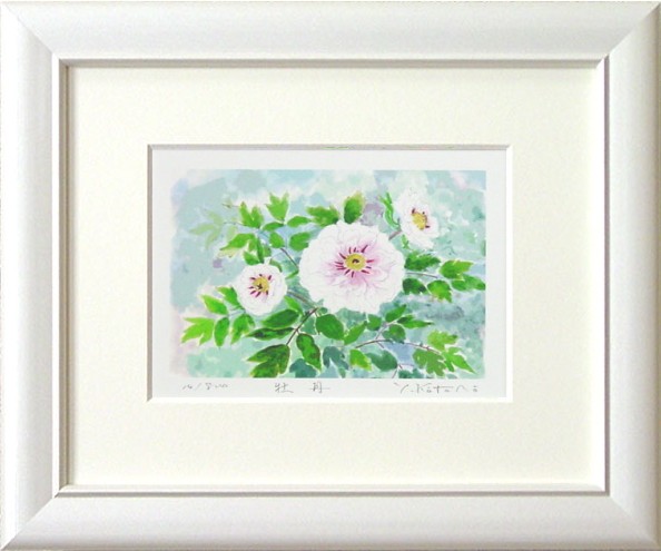 吉岡浩太郎 『牡丹』(インチ判) ジグレ・シルクスクリーン版画 絵画 花 富貴花 春の花 小さい版画
