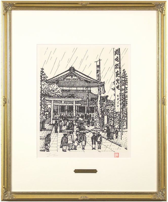 山下 清 「 お稲荷さん ( 豊川 ) 」清のペン画シリーズ「東海道五十三次」より リトグラフ 版画 裸の大将 ドラマ 映画 日本の風景 愛知県 豊川市 豊川稲荷