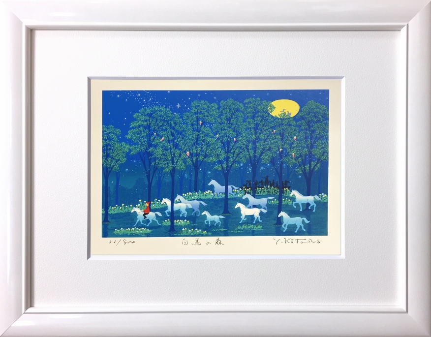 吉岡浩太郎 「 白馬の森 」( 太子判 ) シルクスクリーン ジグレ 版画 版画 絵画 うまくいく 縁起 かわいい 夜