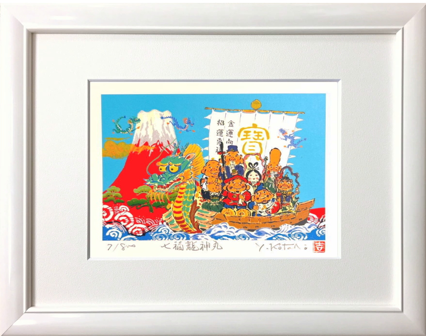 吉岡浩太郎 「 七福龍神丸 」( 太子判 ) ジグレー 版画 版画 絵画 縁起 開運 金運 風水 富士山 赤富士 七福神 竜 辰