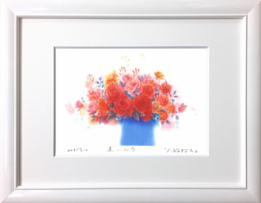 吉岡浩太郎 『赤いバラ』(インチ判) ジグレ版画 絵画 花 小さい版画 赤い花
