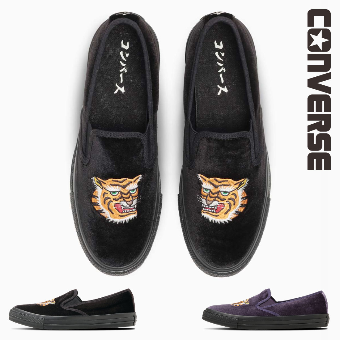 | 特長 | オールスターのパターンアレンジモデル。カンフーシューズをイメージしたインパクトのあるデザイン。アッパーに上品な光沢感のベルベットを採用。甲部分にはトラの顔、踵には「オールスター」に漢字をあてた「全星」を刺繍で落とし込んだデザイン。通気性とクッション性に優れたインソールを採用することで、快適な履き心地を実現。さらにインソールのロゴもカタカナにアレンジ。ロイヤルパープル/ブラック、ブラックの2カラー展開。 |
