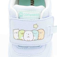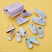 | 特長 | プレキッズ向けランニングモデル、ベビー RSから「すみっコぐらし」とのコラボレーションモデルが登場。すみっコたち(しろくま、ぺんぎん?、とんかつ、ねこ、とかげ)と「ほし(ひとで?)」をベルトにプリントした可愛らしいデザイン。踵には「すみっコぐらし」のロゴをプリント。動きの活発になるベビーからキッズに対応した軽量で屈曲性の良いインジェクションE.V.A.のミッドソールを採用。ワンベルトタイプでベルト先にはタブ、踵にはループが付属するため履かせやすく、履きやすいデザイン。波型意匠をベースにしたアウトソールは、負荷のかかる踵外側にラバーを補強し、ヒールのラバーを抜くことで衝撃吸収性を向上。タンのライニングには名前の記入ができるラベルを付加し、登園などに便利な仕様。カラーは、サックス/ミントの1カラー展開。オリジナルカートンが付属。 |