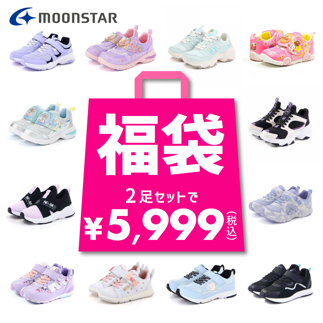 福袋 ムーンスター moonstar キッズ ジュニア スニーカー ニーモ ni-mo ラブラッシュ LUVRUSH 2足セット 子供靴 女の子 運動靴 お買い得 お得 まとめ買い