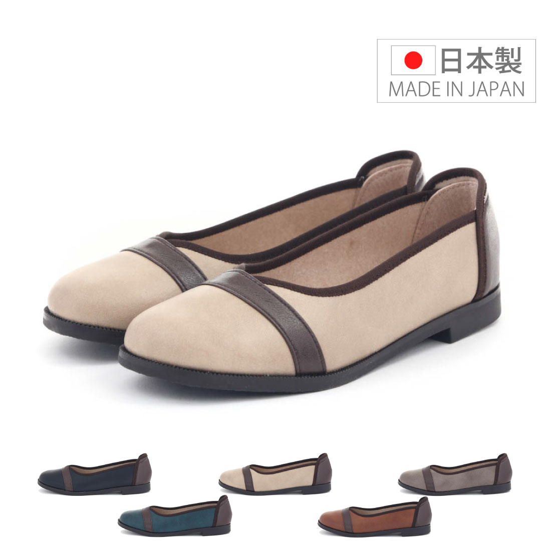| 特長 | 「シンプルなのに上品。ツートンカラーの魅力」 洗練されたツートンカラーが、足元に上品な華やかさをプラスします。シンプルなデザインながらも程よいアクセントがあり、さりげなく大人の魅力を引き立てます。多彩なシーンで映えるだけでなく、幅広いスタイルに溶け込み、どんなコーディネートにも自然と馴染むのが魅力です。また、中敷きの全面に低反発衝撃吸収素材を使用し足に優しい設計となっています。 ■足にやさしい「オーブリック・トゥ」タイプ ・親指側にゆとりを持たせることでより自然に、足の形にフィットします ・足の形に合わせたセンターライン ・指に嬉しい幅広ワイド設計 |