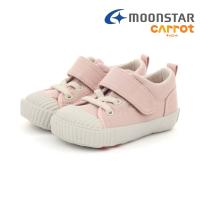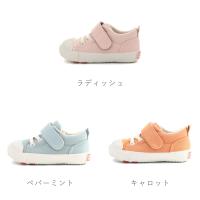 | 特長 | 「こどもの足にいいことぜんぶ」の想いから生まれた「キャロット」の国産ベビーシューズ。ムーンスターの機能性子ども靴「キャロット」40周年を記念した特別仕様です。アッパーには「FOOD TEXTILE」を採用。廃棄予定の野菜や果物由来の成分で染めた、環境にやさしい素材です。限定デザインの中敷きサテンシールやヒールパッチ、ブランドカラーであるオレンジに統一したフレックスジョイントのラインがポイント。時代を問わず履き続けられる飽きの来ないデザインに仕上げました。ヴァルカナイズ製法ならではのしなやかで丈夫な仕上がりと温かみのある風合いが特徴の一足。脱ぎ履きしやすいゴム紐×バンドタイプで、通園からお出かけまで幅広く活用いただけます。独自開発の「4つの機能(つま先ゆったり、カウンターボックス、フレックスジョイント、洗えるインソール)」が、子どもの足の健やかな成長を促します。【つま先ゆったり】つま先にゆとりを持たせた形状で、足の指を圧迫せずにのびのび動かせます。【カウンターボックス】子どもの柔らかくゆがみやすい足を箱型構造でしっかり支えます。【フレックスジョイント】足の曲がりと同じ位置で靴が曲がる設計で、足に余計な負担をかけません。【カテキン】天然緑茶を原料とした自然素材の「カテキン」を使用することで、優れた「抗菌」「防臭」効果を発揮します。【洗えるインソール】足裏になじみ、取り出して洗濯ができるので靴内を清潔に保てる中敷きです。