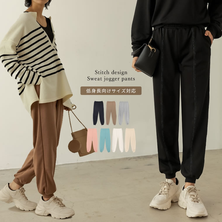[低身長サイズ有]裏毛シームステッチデザインスウェットパンツ