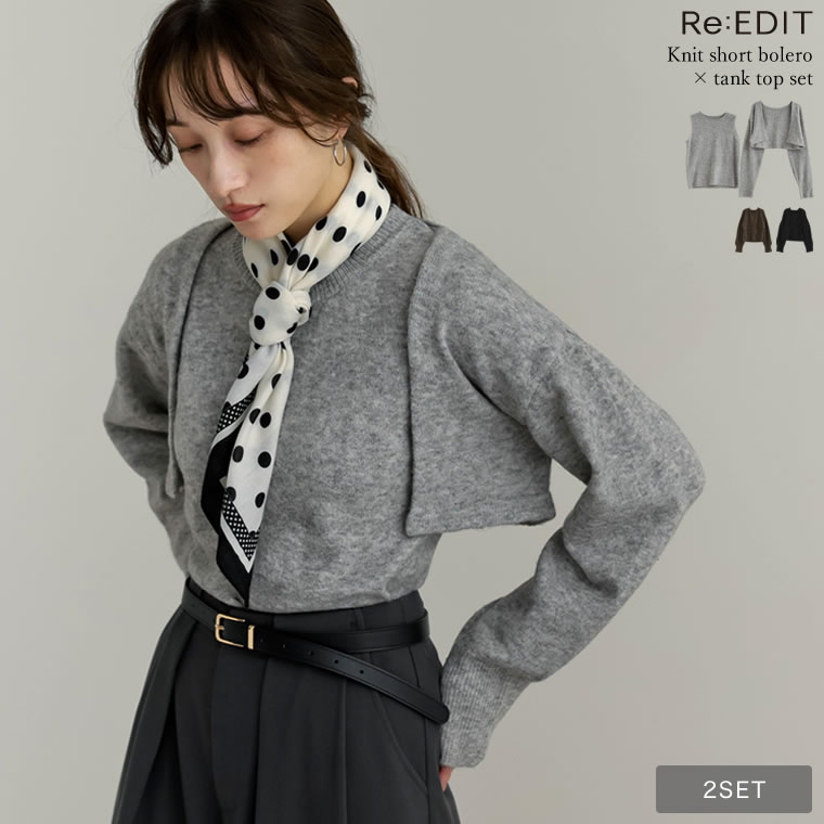 2点セットでボレロ×ニットタンクで合わせて着用するのがおすすめ。